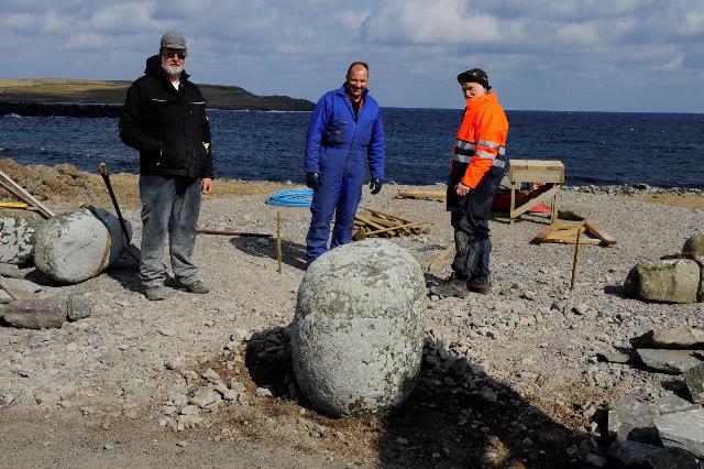 Tom Jamieson, Neil Work and Donnie Morrison with stones on the move.