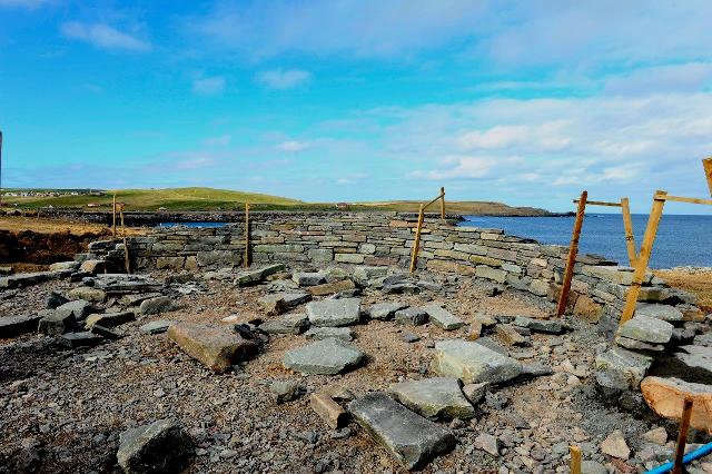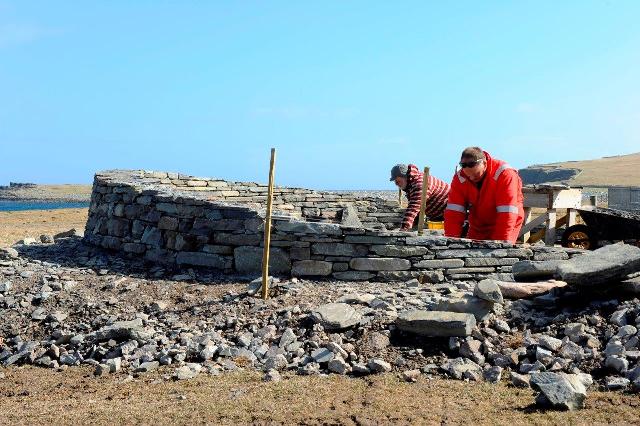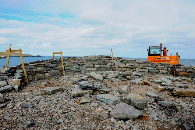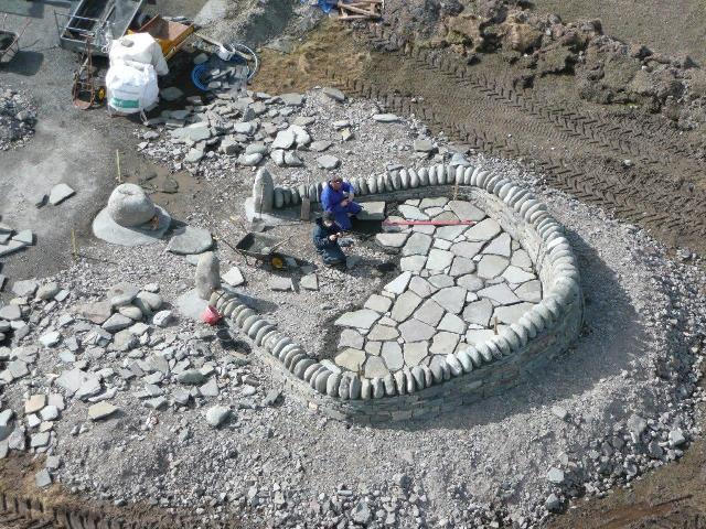 First of the large stones is set in place.