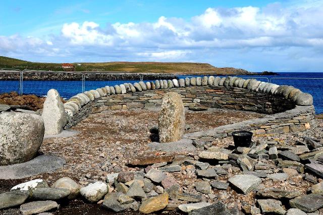 Surrounding horseshoe shaped wall under construction.